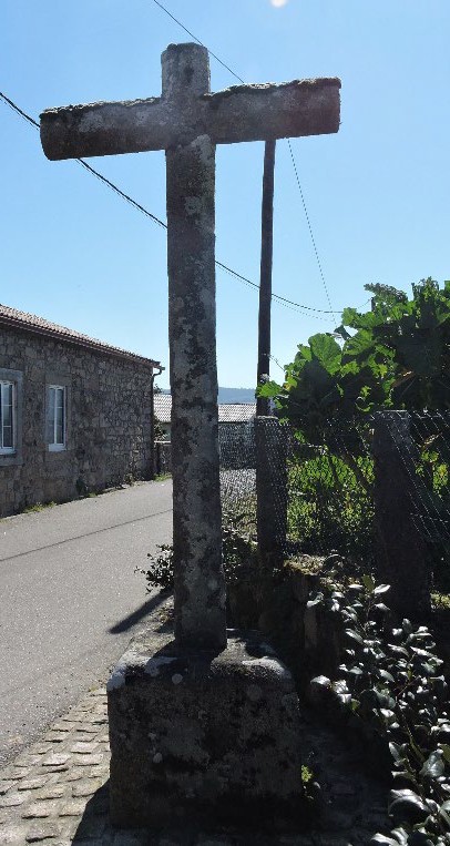 Cruz alta de sección octogonal lisa sobre base cuadrangular de bordes superiores rebaixados. Está situada no barrio da Calle. É coñecido como o «cruceiro do Ditinio».