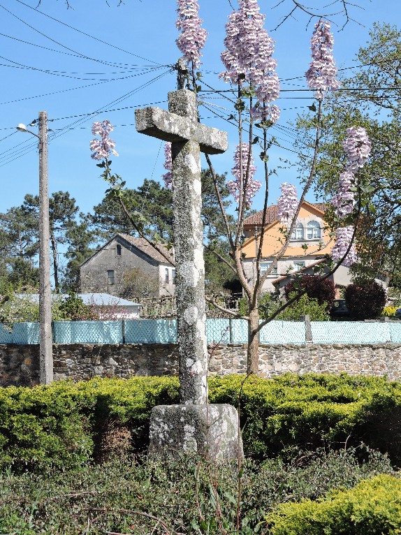 Cruz alta de sección cadrada e brazos lisos, apoiada sobre base tronco piramidal. Non se aprecian nin marcas nin inscricións. Sitúase nunha zona axardinada, no lugar da Gándara