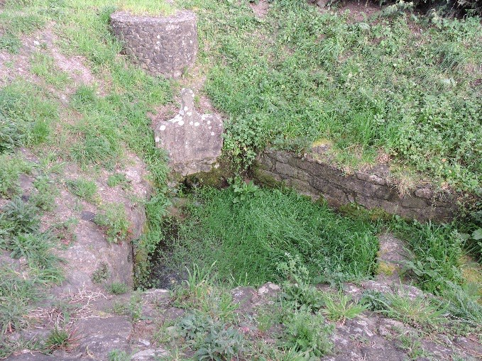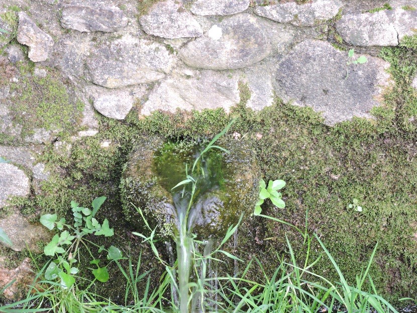 Chamada «Fonte do Pazo» sitúase baixo o nivel da estrada, á súa esquerda indo en dirección á igrexa parroquial. Está rodeada por un muro de cachotería e accédese a ela a través dunhas escadas. A fonte conta cun cano de granito, polo que sae a auga, encaixado nunha parede vertical de bordes redondeados e pináculo central como decoración. Na súa fronte leva unha inscrición gravada, hoxe ilexible.