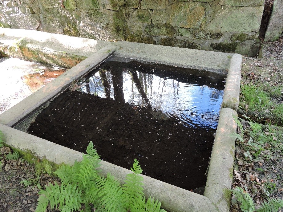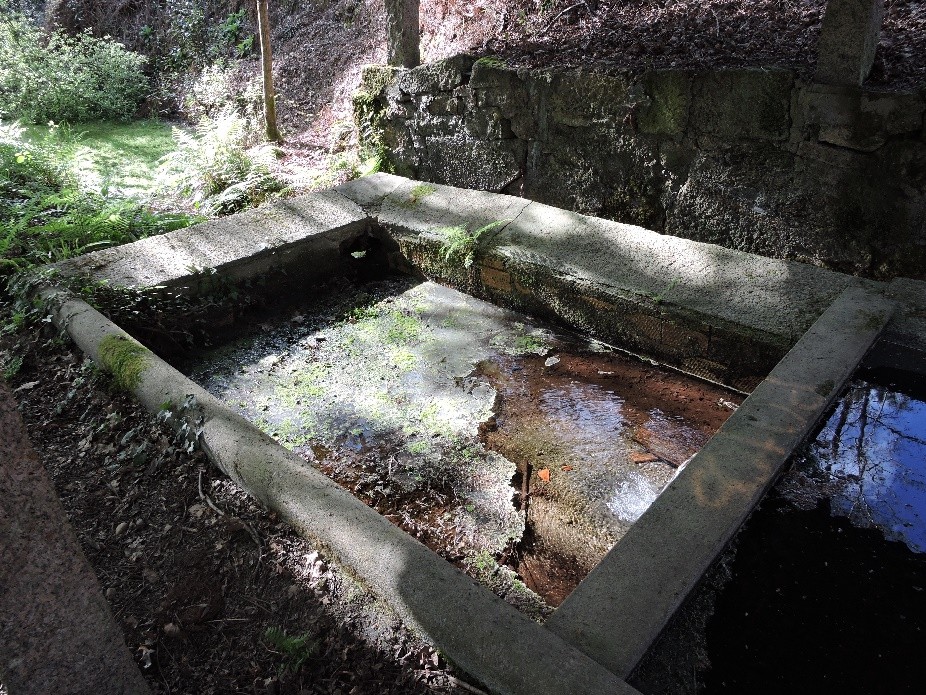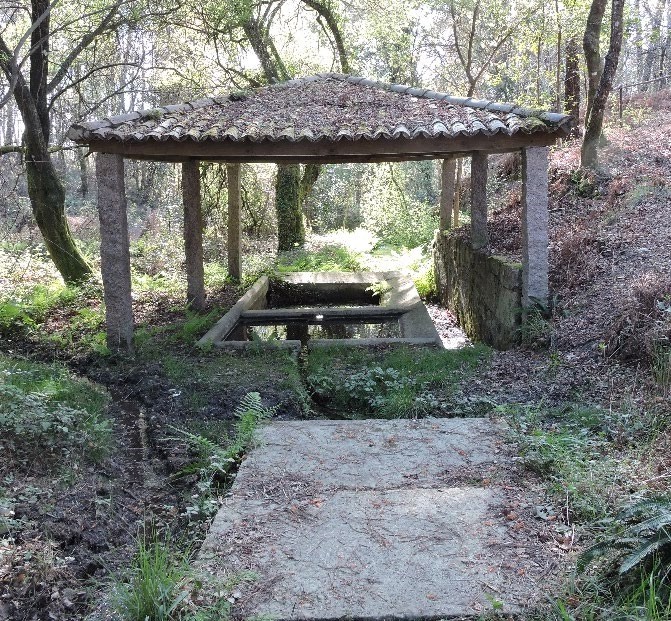 Lavadoiro cuberto con tellado a catro augas apoiado en catro piares de pedra, con tella do país. O depósito ten planta rectangular e está realizado en granito, con reformas posteriores que engaden ladrillo na súa cara interna. Conta con grandes lousas inclinadas en dúas das súas caras, que presentan desgastes propios do uso e o paso do tempo. O interior está divido, con zona diferenciada para o lavado e o aclarado. É coñecido como o Lavadoiro da Fontaíña.