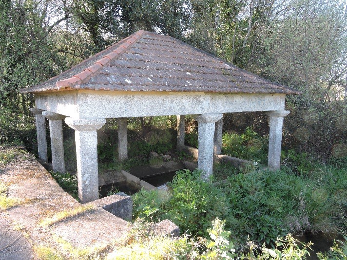 Lavadoiro de pedra de seis prazas, de base rectangular. Está soterrado con respecto ao nivel da estrada con escaleira de acceso. Conta cunha cuberta, de tella cerámica curva, a catro augas, sobre piares de pedra.