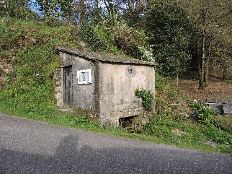 Muíño situado á beira da estrada. Presenta planta rectangular con tellado a unha soa auga cuberto con tella do país. Construído con cachotería e perpiaños, con reformas en ladrillo e cemento. Ten un só inferno, onde conserva o rodicio.