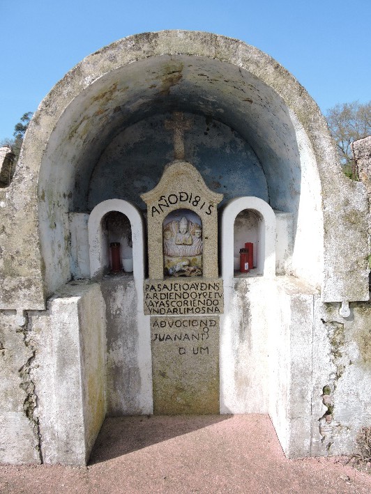 O resto está realizado en pedra. Consta de dúas partes, a superior rematada por unha moldura curva sobre a que se dispón unha cruz exenta de sección cadrada, e na que podemos ler a data de construción «AÑO D1815» e a inscrición «PASAJEIOAYDNS/ARDIENDOYQEIV/ VAYASCORIENDO/YNDARLIMOSNA», e unha inferior, na que continúa a inscrición «ADVOCIOND/ JUANANTº/ D UM».