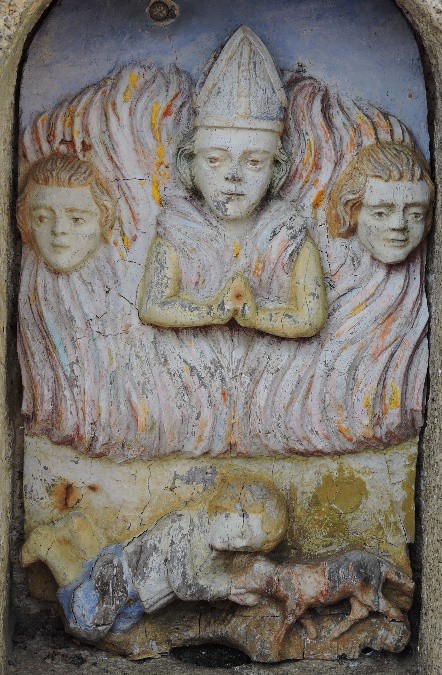 neno de xeonllos cun can que está a trabarlle na man. Segundo parece foi construído por unha promesa dos pais do neno para que non contraese a rabia.