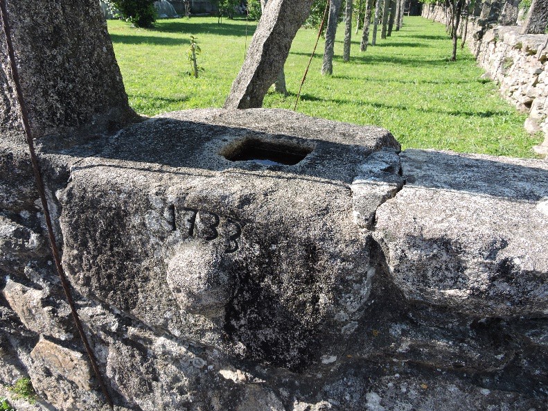 podemos ver unha representación das ánimas entre as lapas baixo un Cristo Crucificado.