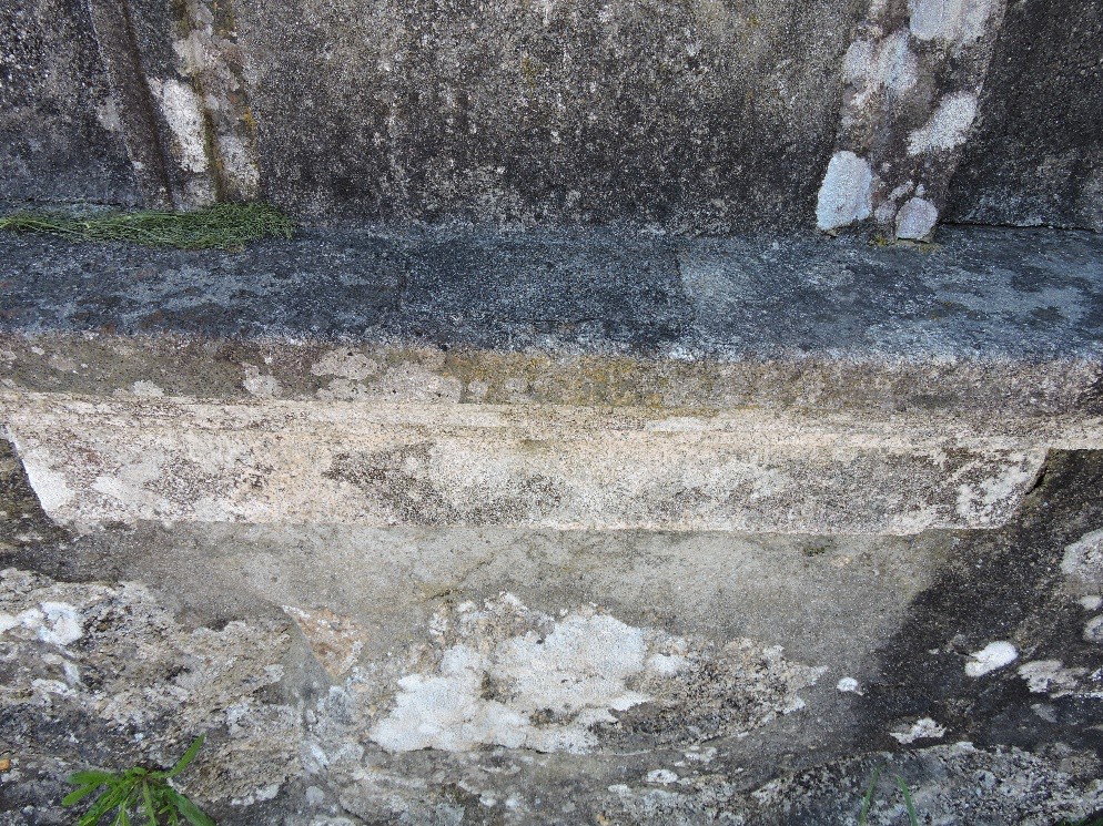 Mirando de fronte ao peto, a man esquerda, e encaixado no muro, encontramos un perpiaño cunha caveira en relevo sobre a que aparece a data 1733 gravada na pedra. Na cara superior ten un burato cadrado, que podería ser para asentar o fuste dunha posible cruz.